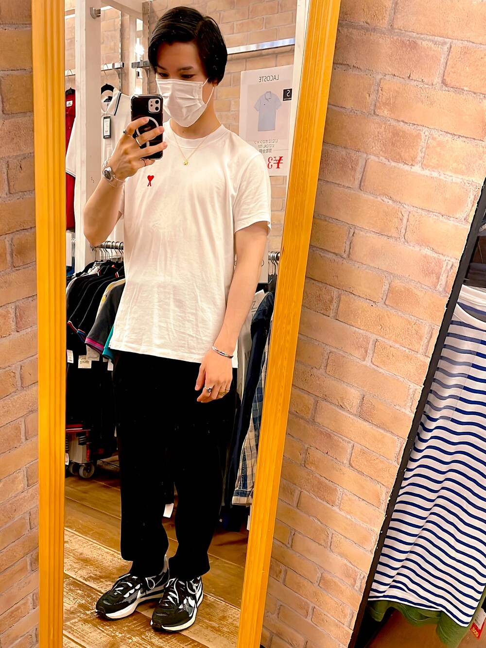 k.sのTシャツ/カットソー「AMI Slim-Fit Embroidered Cotton-Jersey T-Shirt」を使ったコーディネート