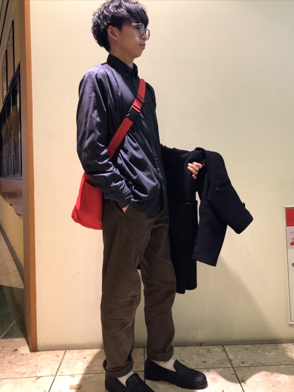 お久しぶりです!! クリスマスに貰ったお気に入りのメガネと 新しく下ろしたお気に入りのコーデュロイパンツです。 首元から黒のニットをちょっと出して上にシャツをレイヤードしてます。 この季節は好きな素材が多くてやめられない!