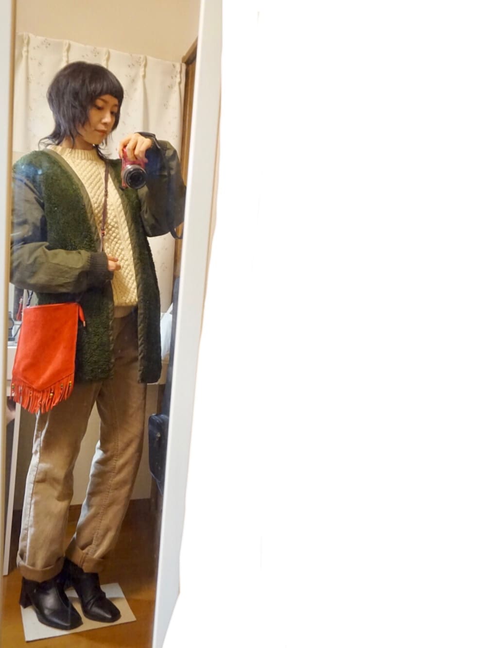 ミリタリーのライナーでアウター代わり 袖の切り替えが可愛すぎ