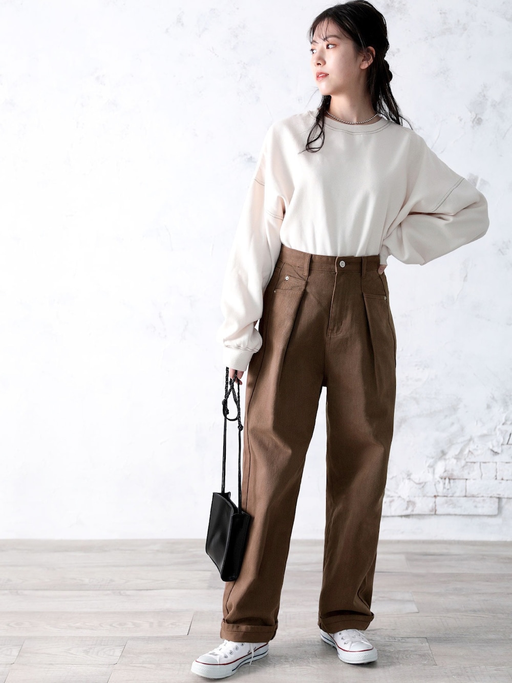 classicalelfクラシカルエルフ(Classical Elf ZOZOTOWN)のデニムパンツ「深めのタックが印象的。ハイウエストデニム&チノ タックワイドパンツ」を使ったコーディネート