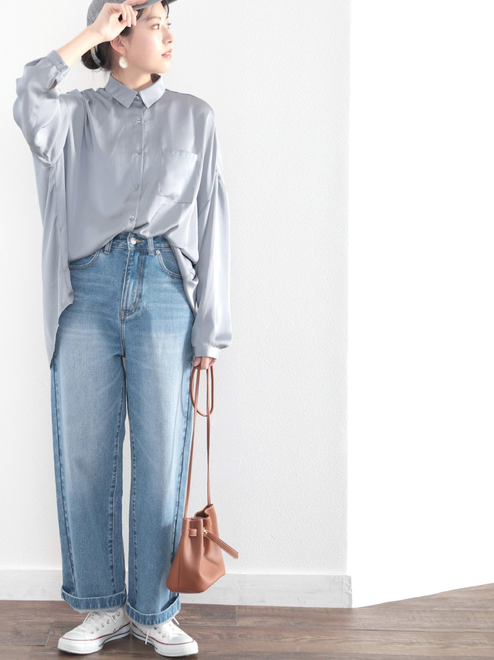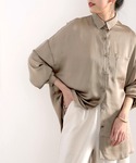 classicalelfクラシカルエルフのシャツ/ブラウス「艶々サテンが上品。ヴィンテージサテンオーバーサイズレギュラーカラーシャツ」を使ったコーディネート