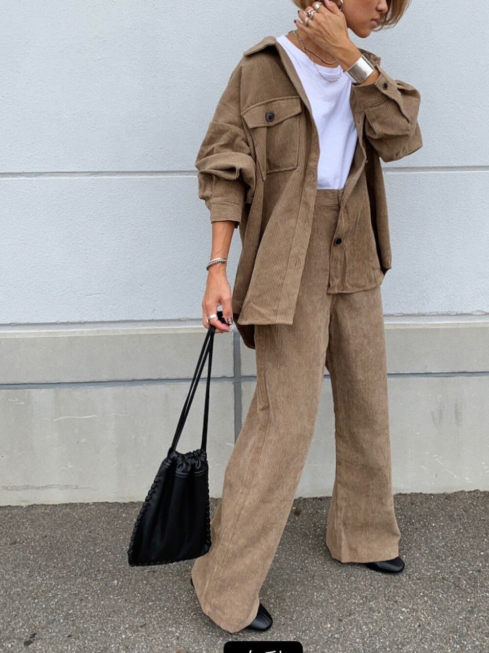 Instagram▶️12anna23様 セットアップが楽しめる。コーデュロイCPOシャツ ワイドなのに美シルエット。セットアップも楽しめるコーデュロイパンツ。 素敵な着こなしありがとうございます😊♡
