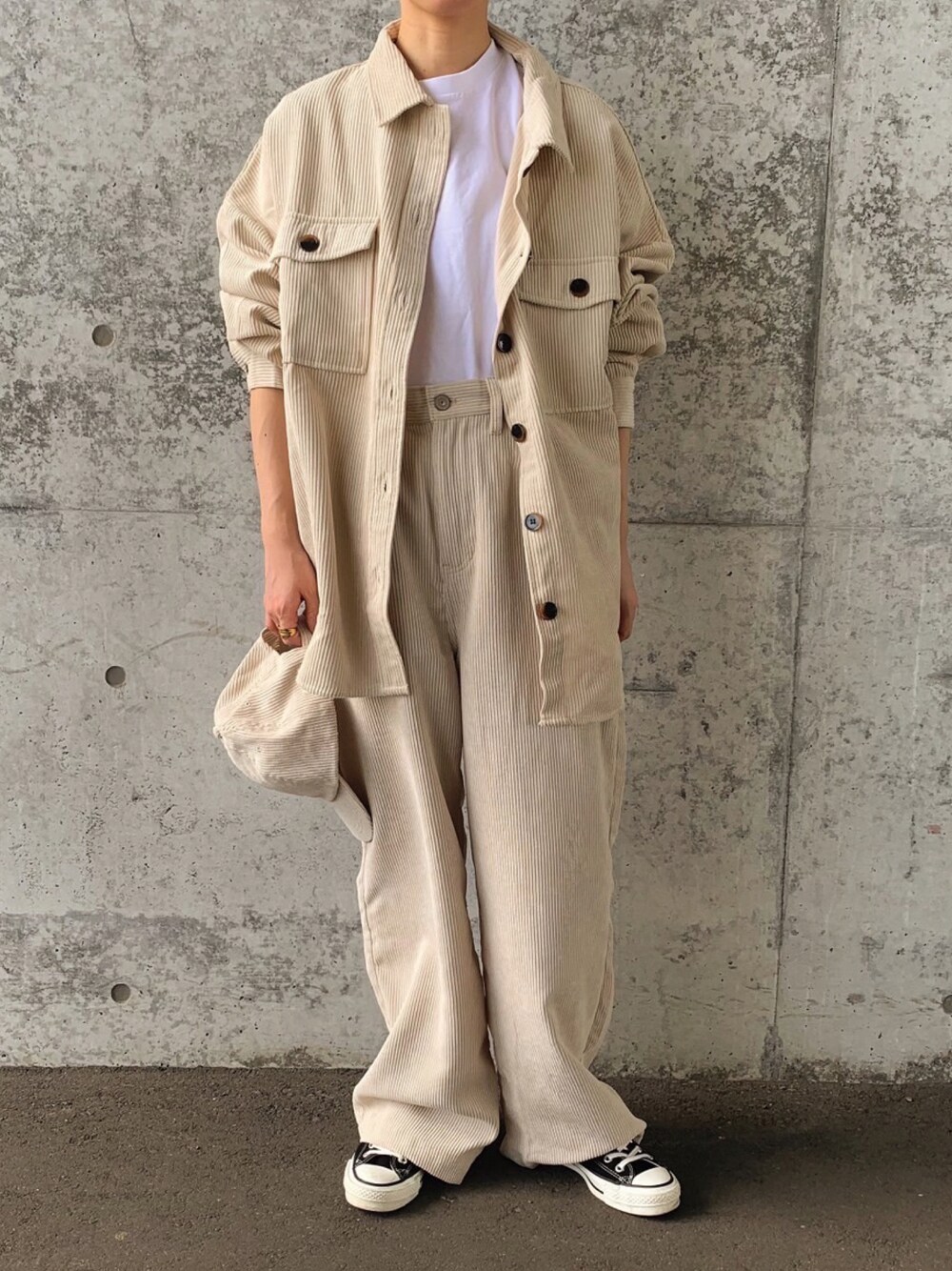 Instagram▶️2323son様 セットアップが楽しめる。コーデュロイCPOシャツ ワイドなのに美シルエット。セットアップも楽しめるコーデュロイパンツ。 《Javaジャバコラボ》21AWコーデュロイキャップ 素敵な着こなしありがとうございます😊♡