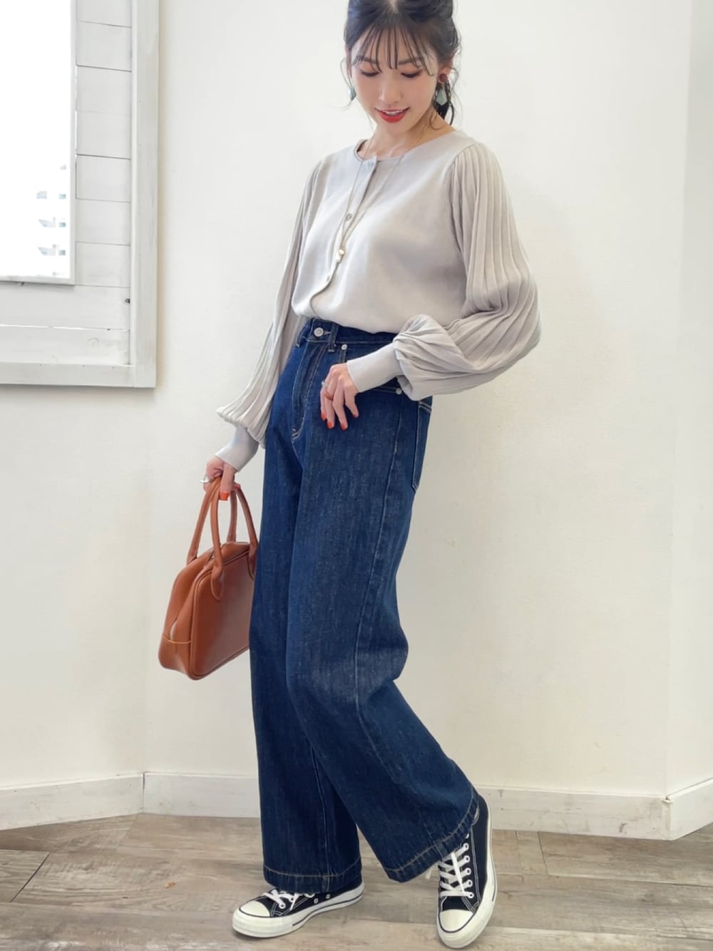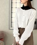 レトロな袖ぽわん。2way袖プリーツニットカーディガン 大人カジュアルな着こなし🐢💓