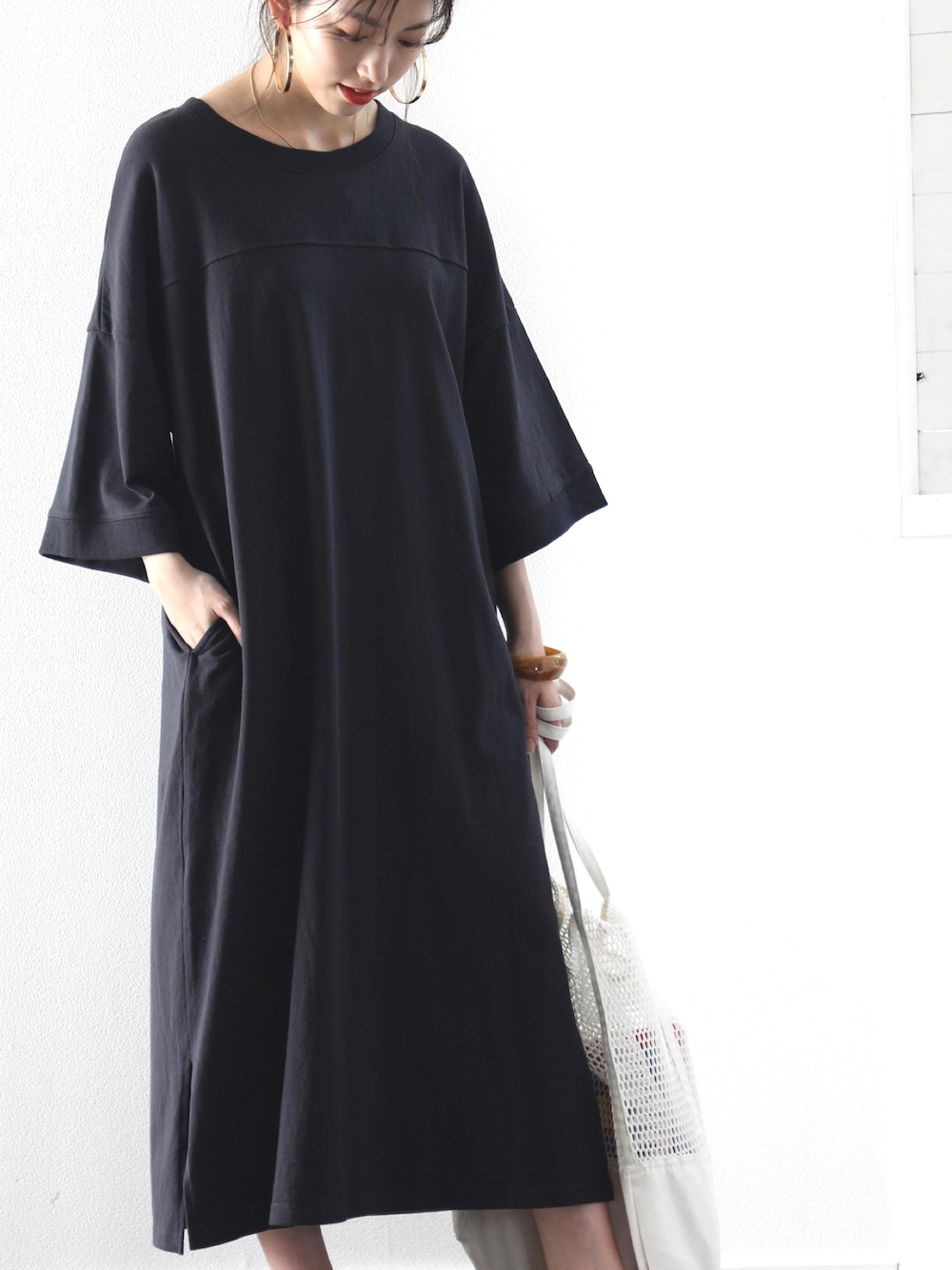 classicalelfクラシカルエルフ(Classical Elf ZOZOTOWN)のワンピース「《JaVa ジャバコラボ》綿100%、ゆるっと楽ちん。サイドスリットロングワンピース」を使ったコーディネート