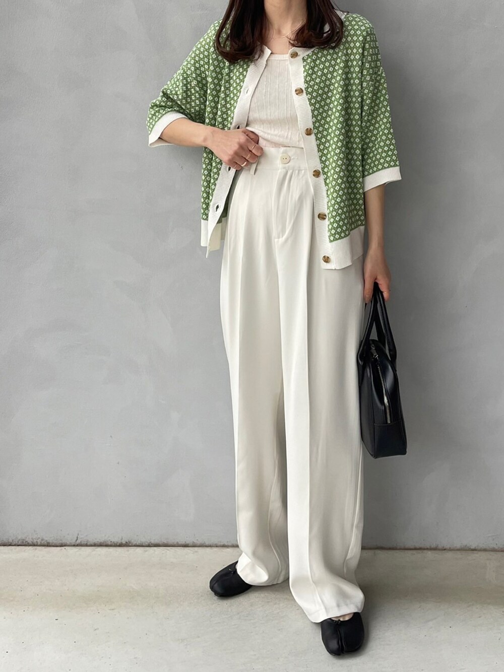 manamiiin___ 様素敵な着こなしありがとうございます!✨ ジャカード柄ニットカーディガンコーデ💚