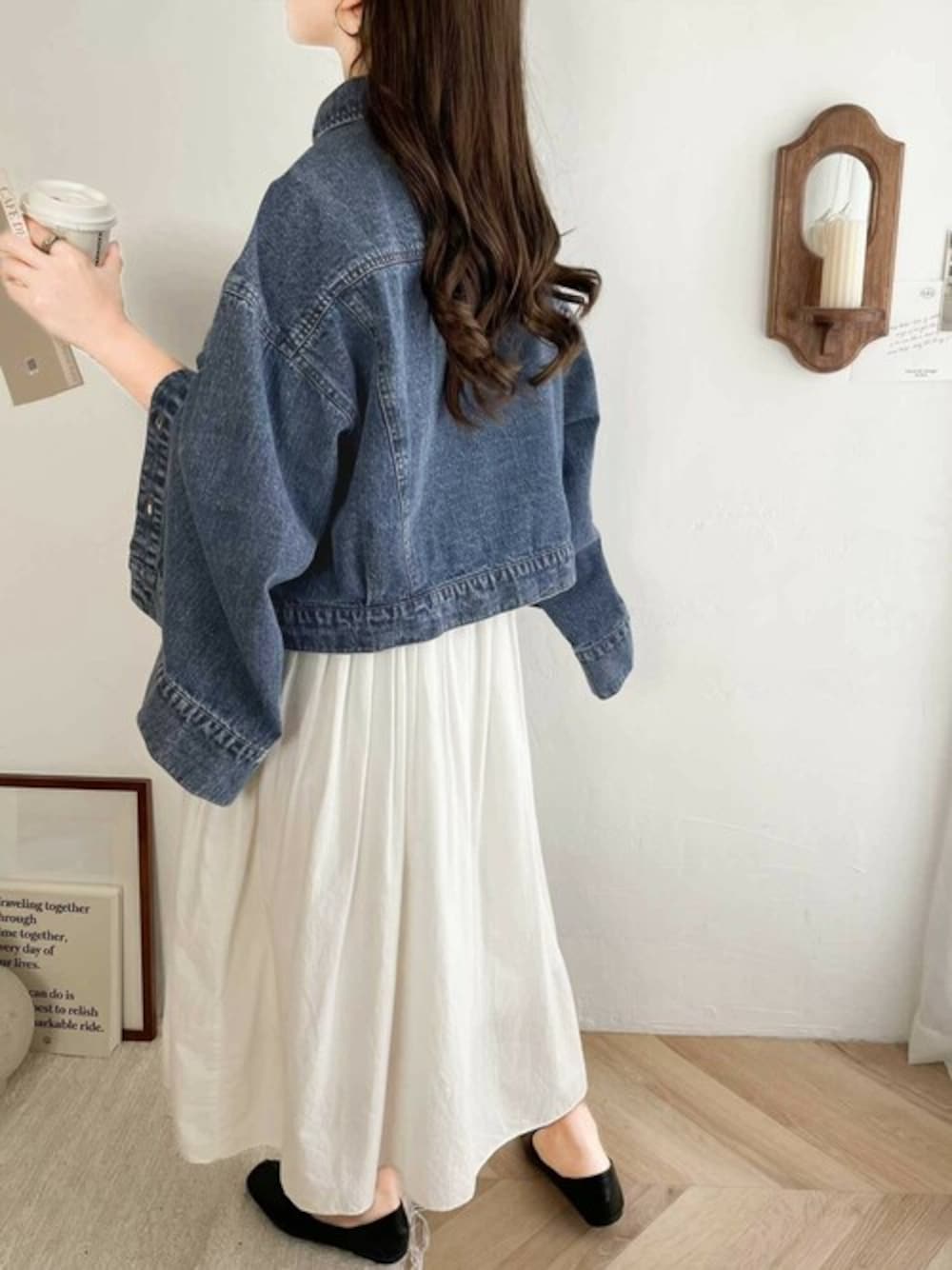 デニムジャケット×白のロングスカートコーデ✿