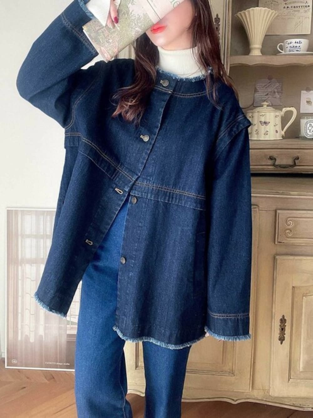 classicalelfクラシカルエルフ(Classical Elf ZOZOTOWN)のデニムジャケット「春に大活躍!フリンジ切替デニムジャケット」を使ったコーディネート
