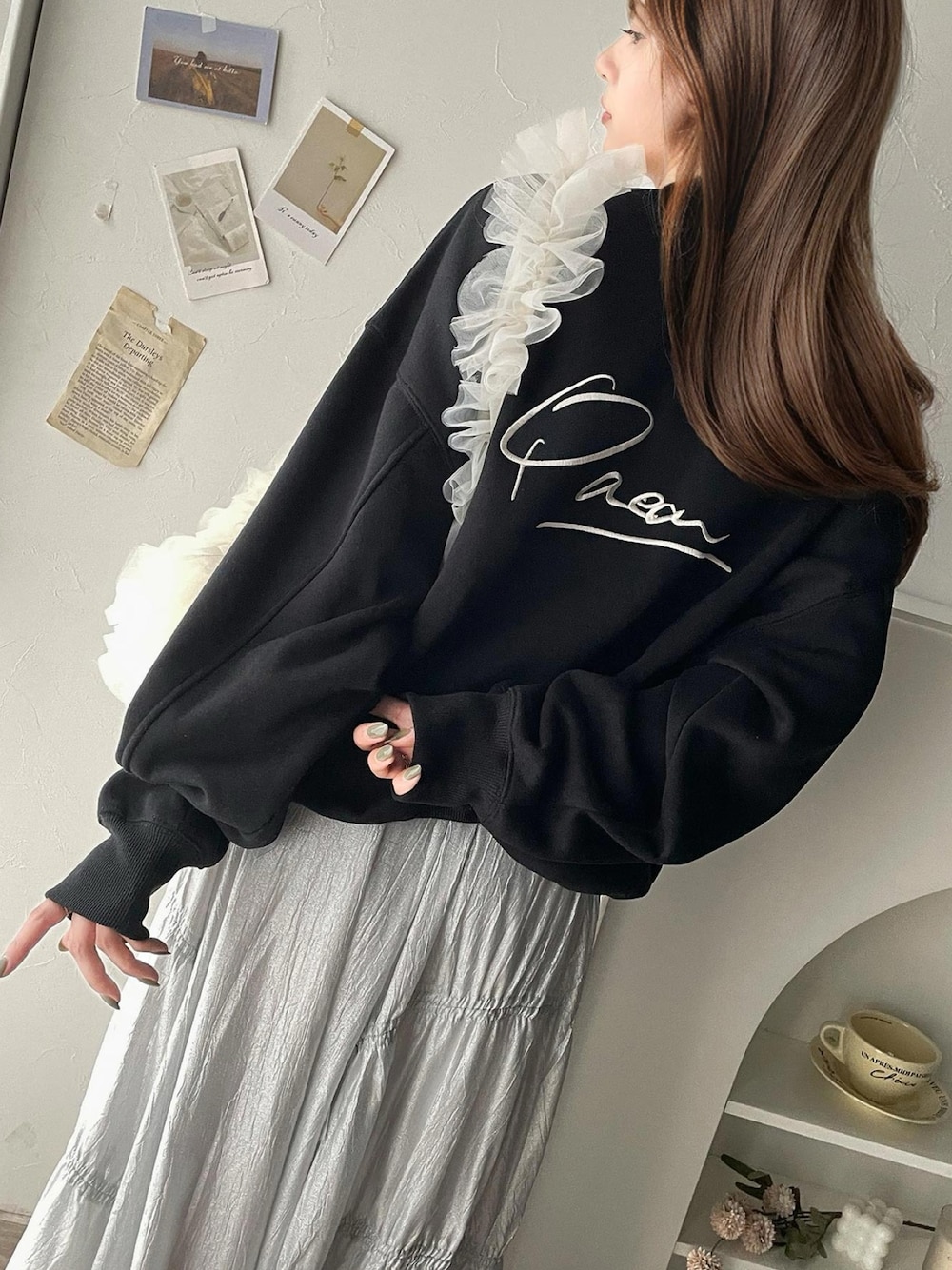 classicalelfクラシカルエルフ(Classical Elf ZOZOTOWN)のスウェット「立体感のある 刺繍がキャッチー。paeanバック 刺繍 BIG刺繍 裏起毛 オーバーサイズ スウェット」を使ったコーディネート