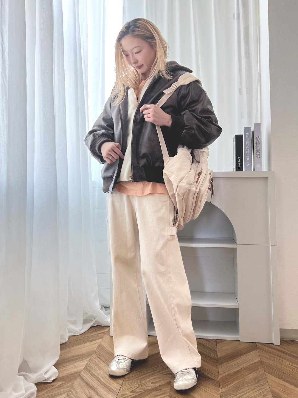 classicalelfクラシカルエルフのブルゾン「《JaVaジャバコラボ》質感に一目惚れ。リブタートル フェイク レザー オーバーサイズ ジャケット」を使ったコーディネート