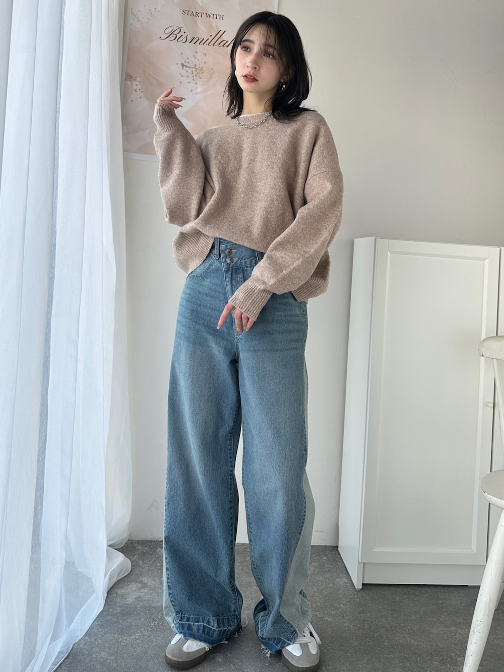 classicalelfクラシカルエルフ(Classical Elf ZOZOTOWN)のニット/セーター「ゆったりふわふわもっちりの癒しアイテム。コクーン シルエット ミックス カラー オーバーサイズニット」を使ったコーディネート