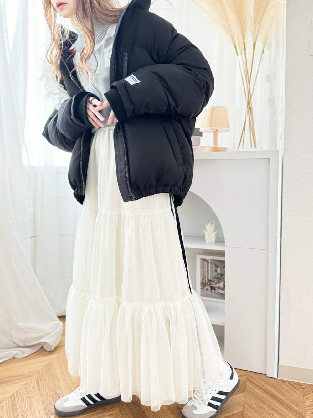 classicalelfクラシカルエルフのブルゾン「《JaVa ジャバコラボ》防寒とオシャレを両立。配色ジップ×フィンガーホール付き中綿ブルゾン」を使ったコーディネート