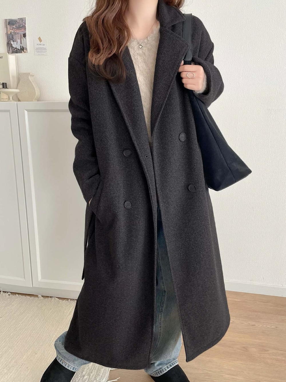 classicalelfクラシカルエルフ(Classical Elf ZOZOTOWN)のチェスターコート「洗練された 冬スタイルを彩る。 フェイク ウール ベルト付き ダブル チェスター コート(ロング丈)」を使ったコーディネート