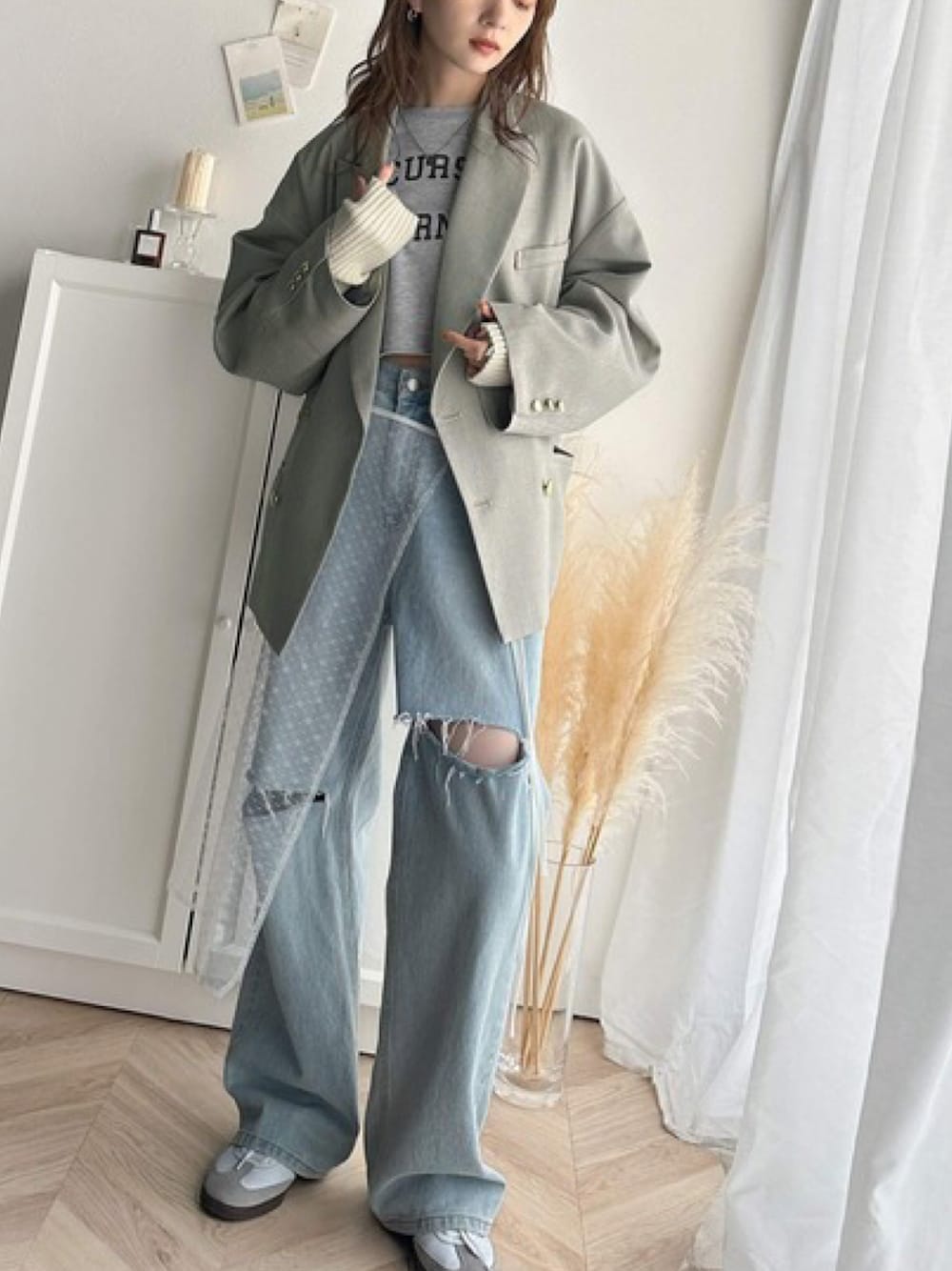 classicalelfクラシカルエルフ(Classical Elf ZOZOTOWN)のテーラードジャケット「これ一着で好印象。 サイド スリット オーバーサイズ ダブルジャケット(ユニセックス)」を使ったコーディネート
