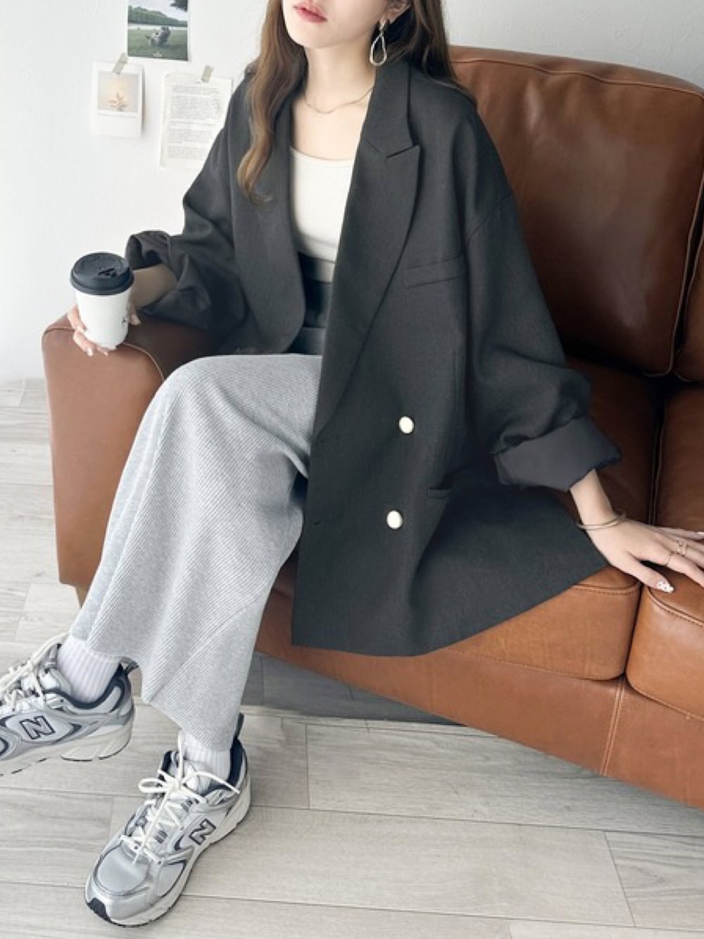 classicalelfクラシカルエルフ(Classical Elf ZOZOTOWN)のテーラードジャケット「これ一着で好印象。 サイド スリット オーバーサイズ ダブルジャケット(ユニセックス)」を使ったコーディネート