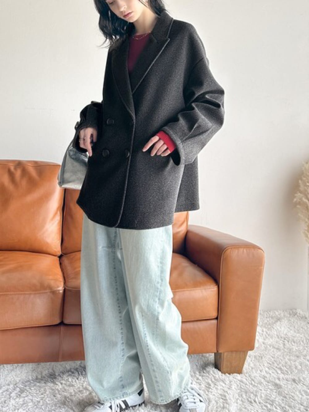 classicalelfクラシカルエルフのテーラードジャケット「ONもOFFもキマる。こなれ感漂うフェイクウール素材ダブルテーラードジャケット」を使ったコーディネート