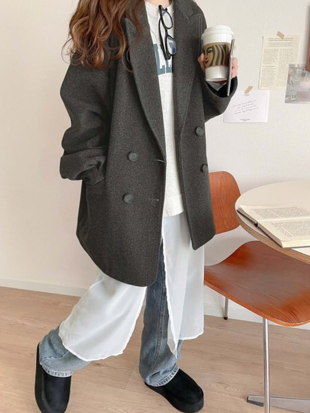 classicalelfクラシカルエルフのテーラードジャケット「ONもOFFもキマる。こなれ感漂うフェイクウール素材ダブルテーラードジャケット」を使ったコーディネート
