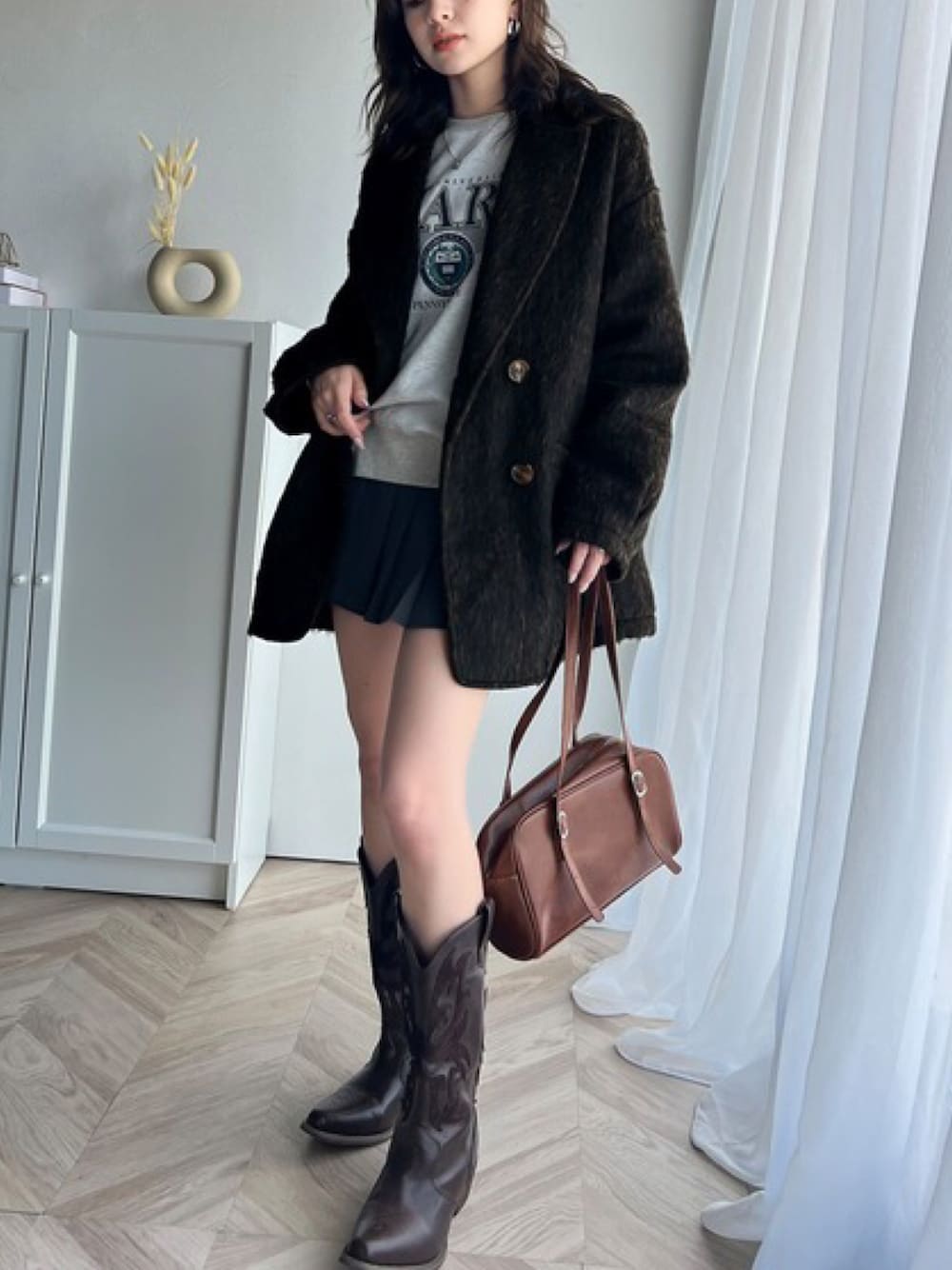 classicalelfクラシカルエルフのテーラードジャケット「気軽に羽織れる大人のアウター。ミックスシャギーダブルジャケットコート」を使ったコーディネート