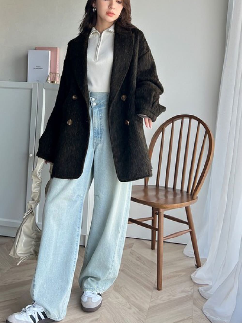 classicalelfクラシカルエルフのテーラードジャケット「気軽に羽織れる大人のアウター。ミックスシャギーダブルジャケットコート」を使ったコーディネート