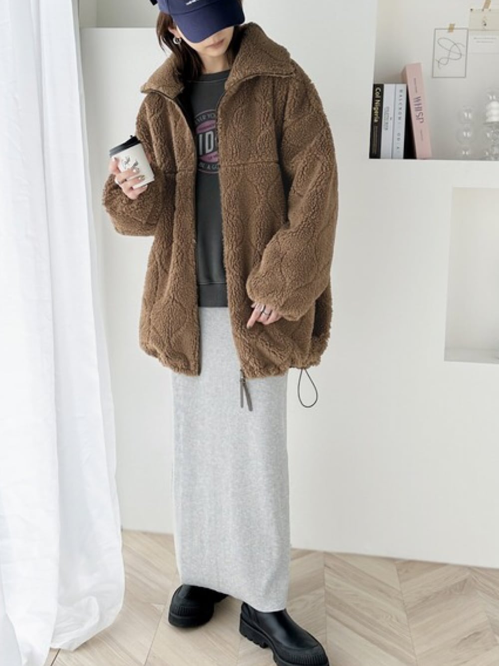 classicalelfクラシカルエルフのブルゾン「ゆるっとたぷっと。ビッグカラーキルティングダブルジップ オーバーサイズ ボアブルゾン」を使ったコーディネート