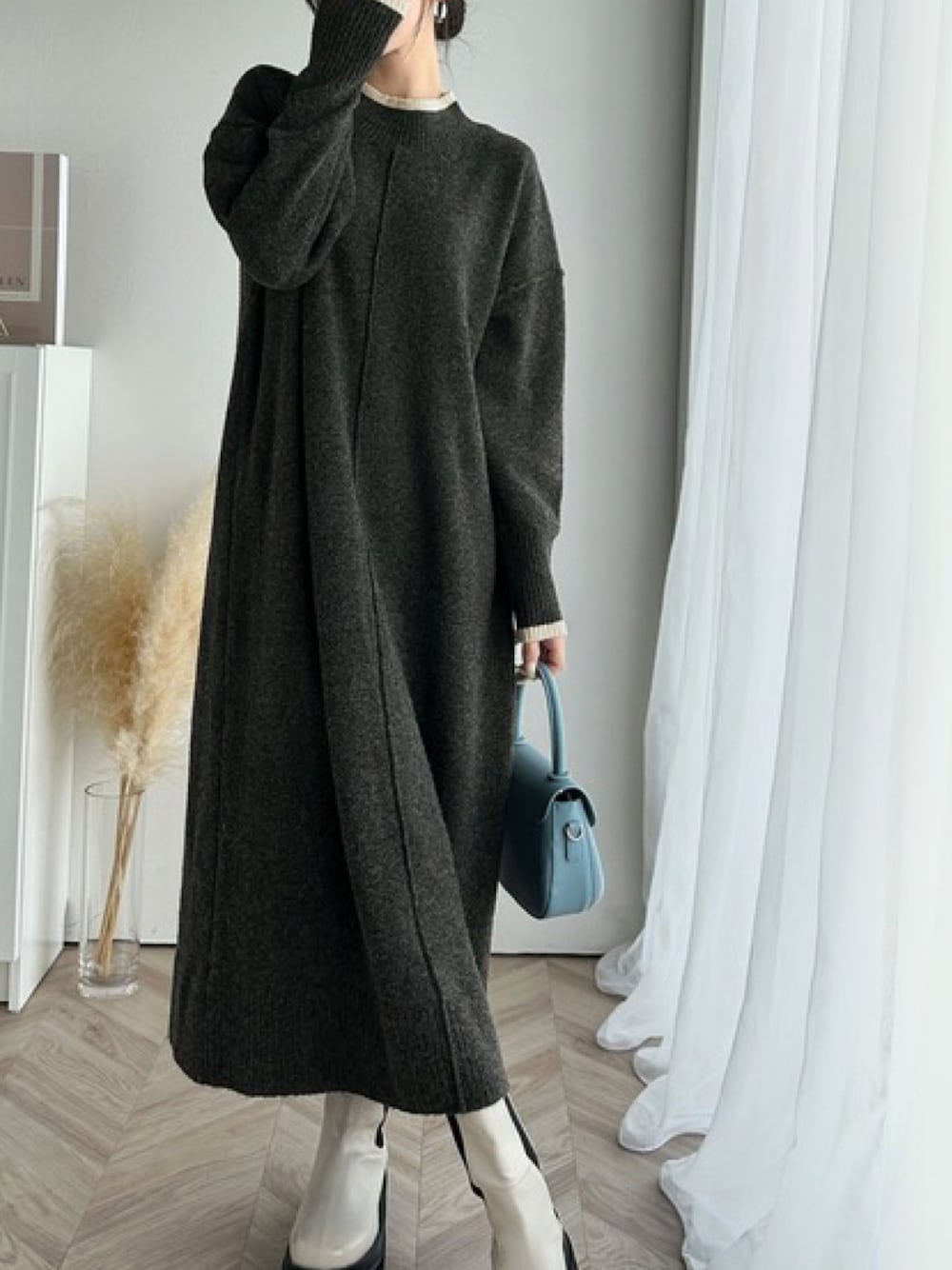 classicalelfクラシカルエルフのワンピース「大人のリラックスムード。ふわもちミックスカラー配色ブークレーニットワンピース」を使ったコーディネート