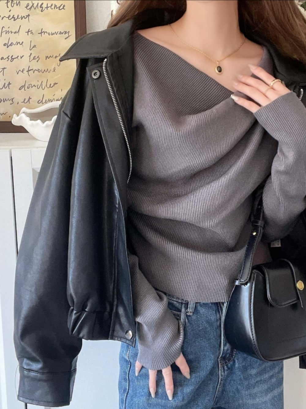 classicalelfクラシカルエルフのニット/セーター「程よい肌魅せで「あざと可愛い」♪ 胸元 ドレープ デザイン きれいめニット(長袖)」を使ったコーディネート