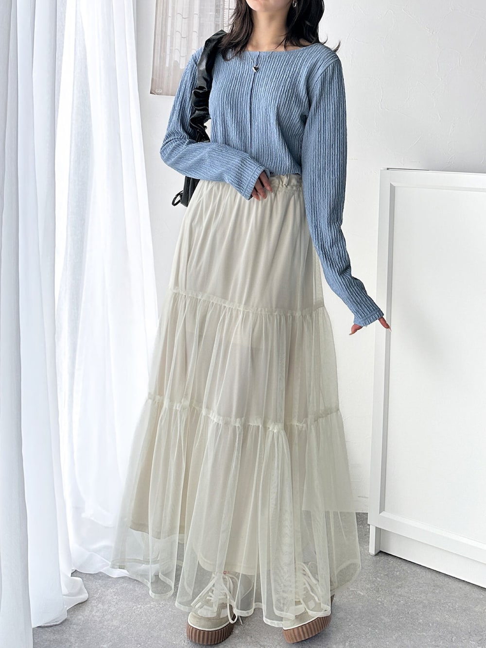 classicalelfクラシカルエルフのTシャツ/カットソー「ストライプで煌めく抜け感。前後2wayジャガードトップス(長袖)」を使ったコーディネート