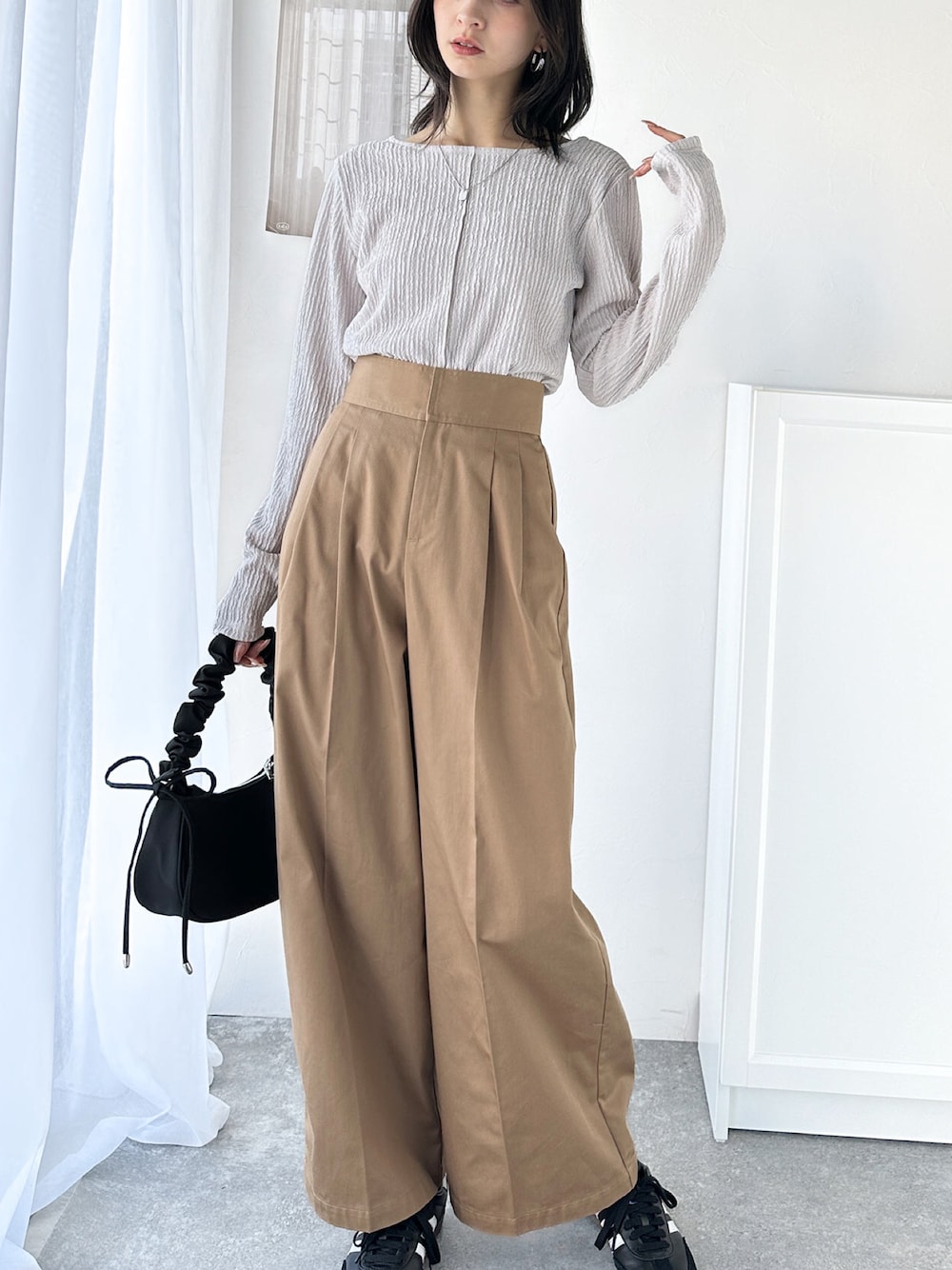 classicalelfクラシカルエルフのTシャツ/カットソー「ストライプで煌めく抜け感。前後2wayジャガードトップス(長袖)」を使ったコーディネート