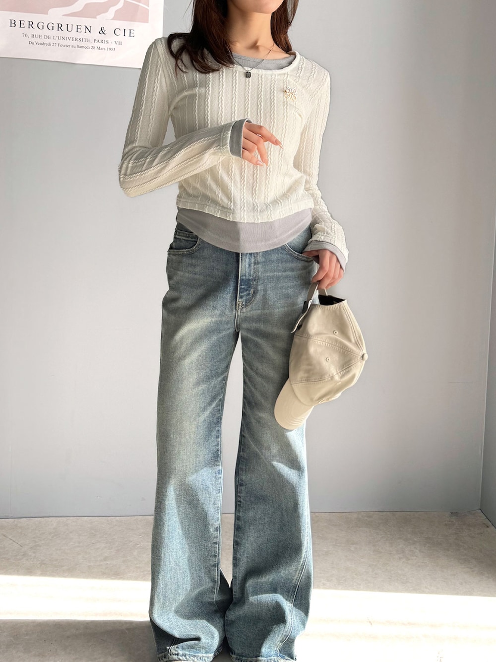 classicalelfクラシカルエルフのTシャツ/カットソー「【mily bilet】トレンド感満載のドッキングデザイン。ブローチ付き異素材レイヤード風ケーブル編みカットソー(長袖)」を使ったコーディネート