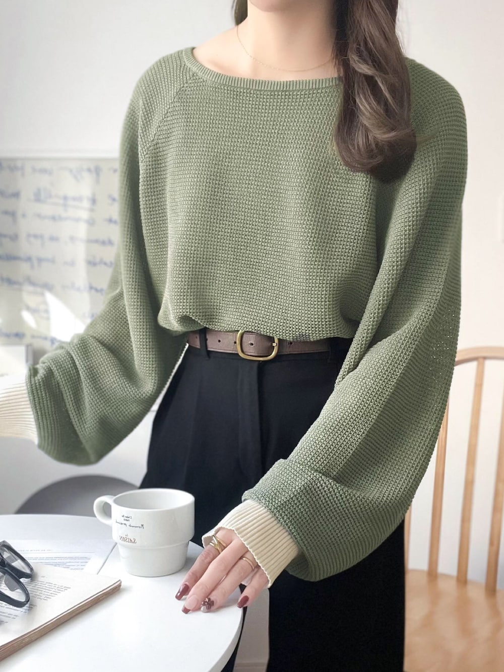 classicalelfクラシカルエルフ(Classical Elf ZOZOTOWN)のTシャツ/カットソー「遊び心のある程よい透け感。オーバーサイズワッフル編みドルマン袖トップス(長袖)」を使ったコーディネート