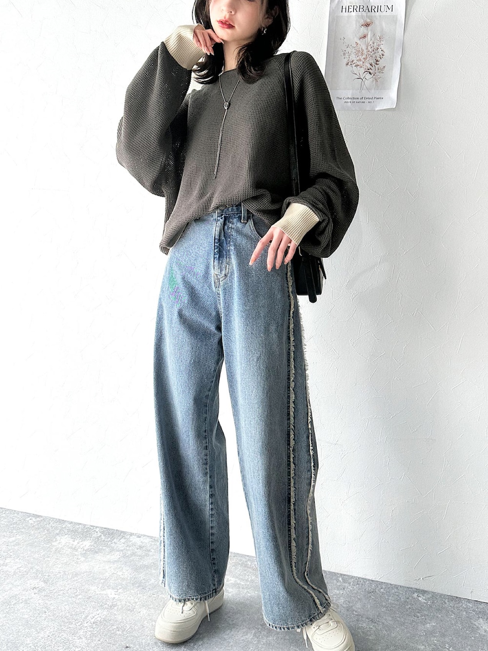 classicalelfクラシカルエルフ(Classical Elf ZOZOTOWN)のTシャツ/カットソー「遊び心のある程よい透け感。オーバーサイズワッフル編みドルマン袖トップス(長袖)」を使ったコーディネート