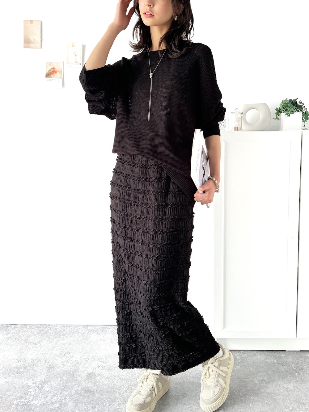 classicalelfクラシカルエルフ(Classical Elf ZOZOTOWN)のTシャツ/カットソー「遊び心のある程よい透け感。オーバーサイズワッフル編みドルマン袖トップス(長袖)」を使ったコーディネート