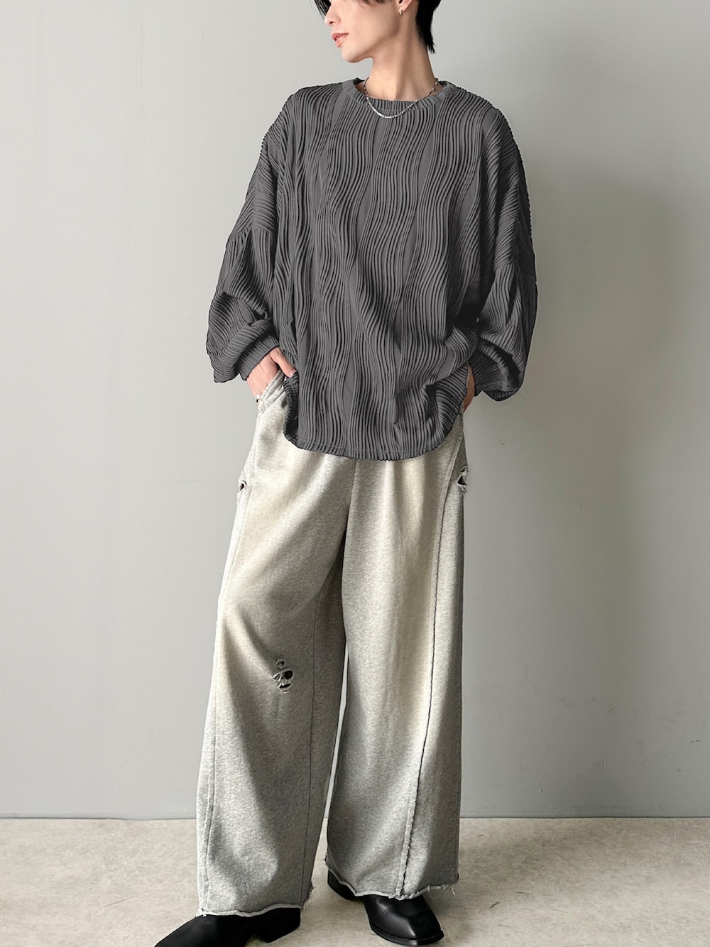 classicalelfクラシカルエルフ(Classical Elf ZOZOTOWN)のTシャツ/カットソー「ゆるさとスタイリッシュを両立。オーバーサイズウェーブ柄ジャガード長袖Tシャツ」を使ったコーディネート