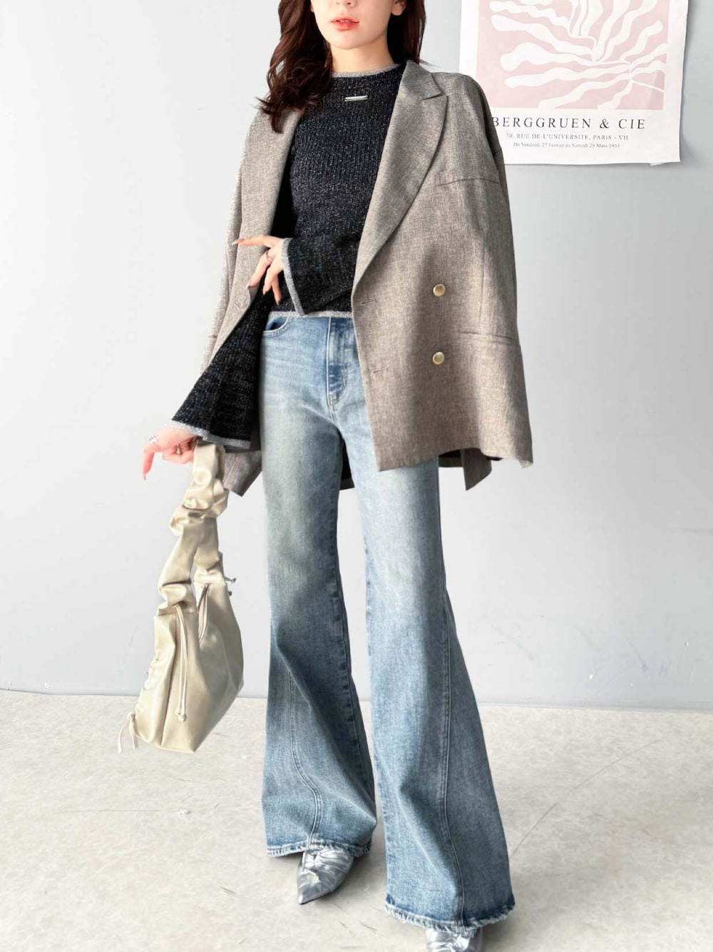 classicalelfクラシカルエルフ(Classical Elf ZOZOTOWN)のニット/セーター「【mily bilet】きらめきと上品さ溢れる。ラメ入りリブプチハイ袖フレアニット(長袖)」を使ったコーディネート