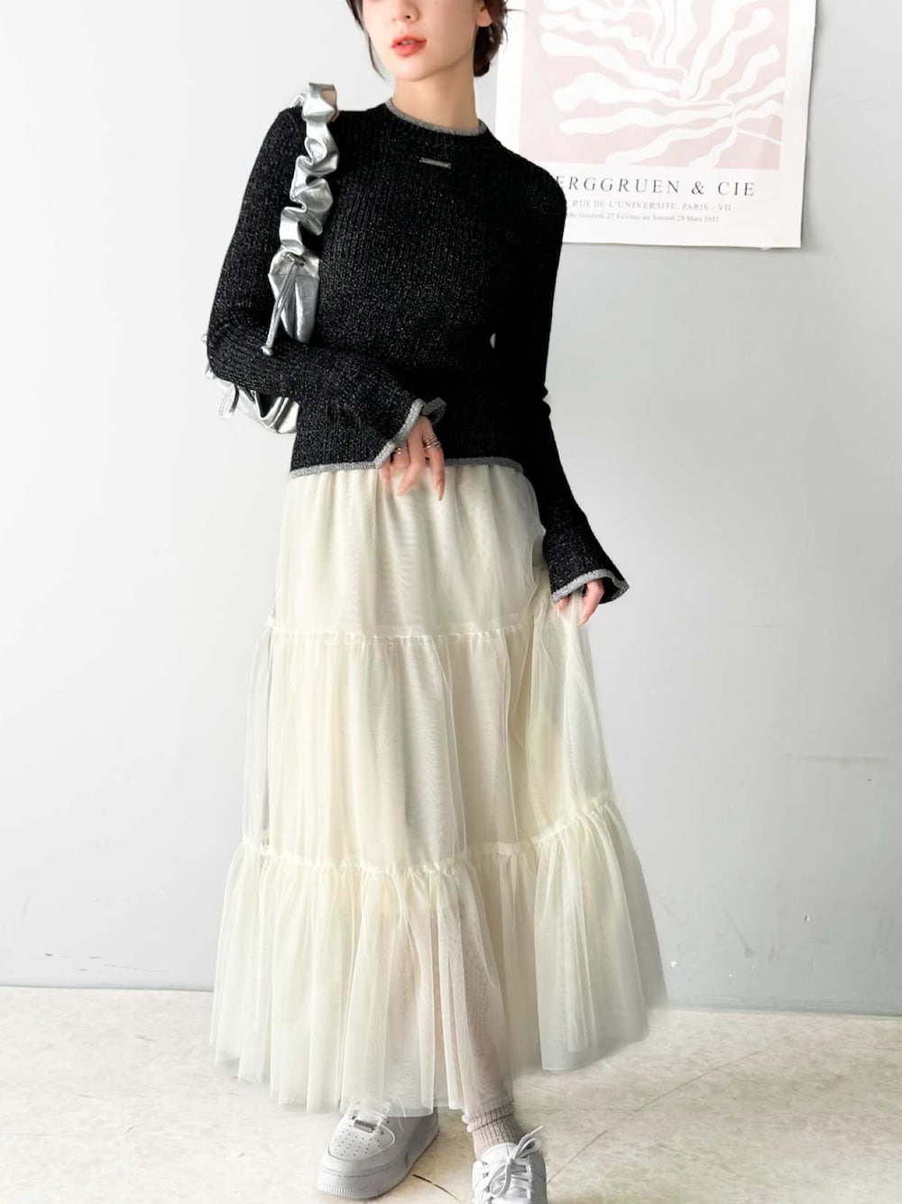 classicalelfクラシカルエルフ(Classical Elf ZOZOTOWN)のニット/セーター「【mily bilet】きらめきと上品さ溢れる。ラメ入りリブプチハイ袖フレアニット(長袖)」を使ったコーディネート