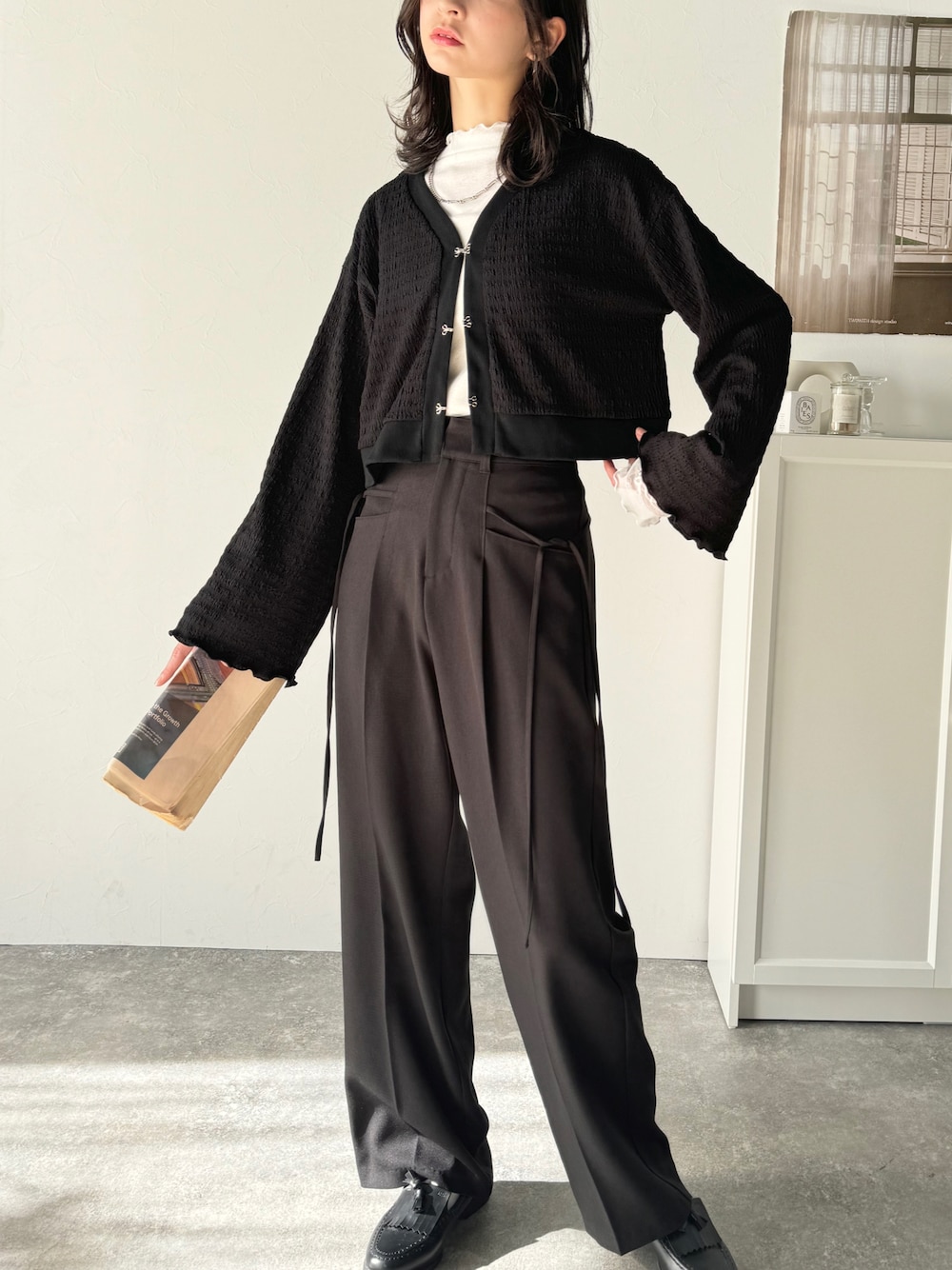 classicalelfクラシカルエルフのカーディガン/ボレロ「シルエットがキレイ♪ホックデザインショート丈ジャガードカーディガン」を使ったコーディネート