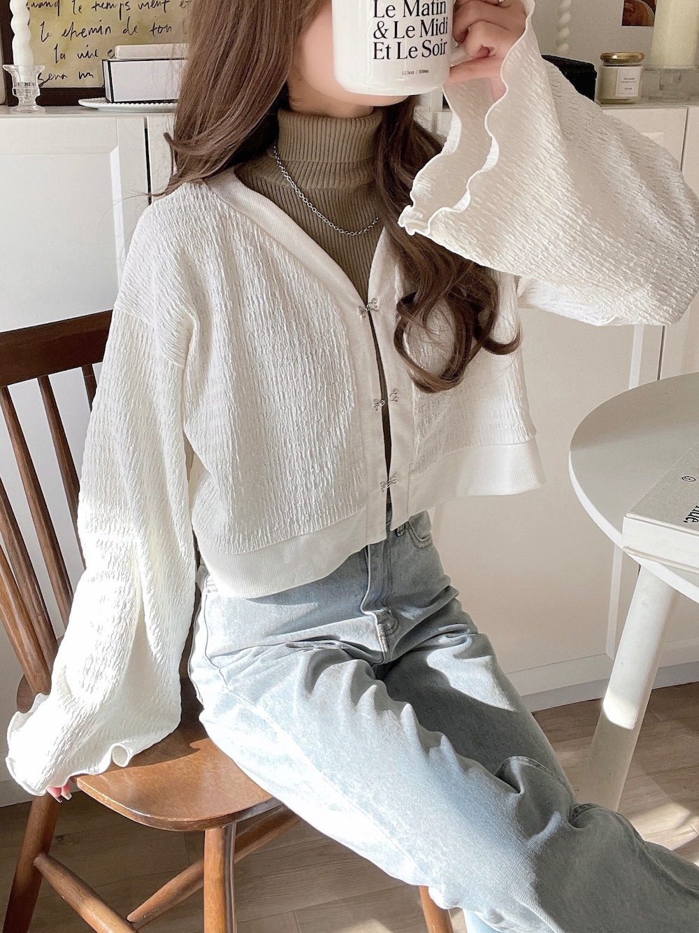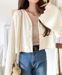 classicalelfクラシカルエルフのカーディガン/ボレロ「シルエットがキレイ♪ホックデザインショート丈ジャガードカーディガン」を使ったコーディネート
