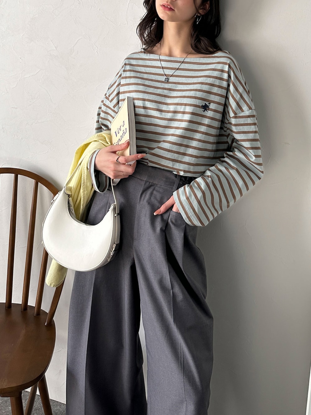 classicalelfクラシカルエルフ(Classical Elf ZOZOTOWN)のTシャツ/カットソー「快適な着心地と洗練されたデザインが魅力。ボートネックオーガニックコットン100%パネルボーダーTシャツ(長袖)」を使ったコーディネート
