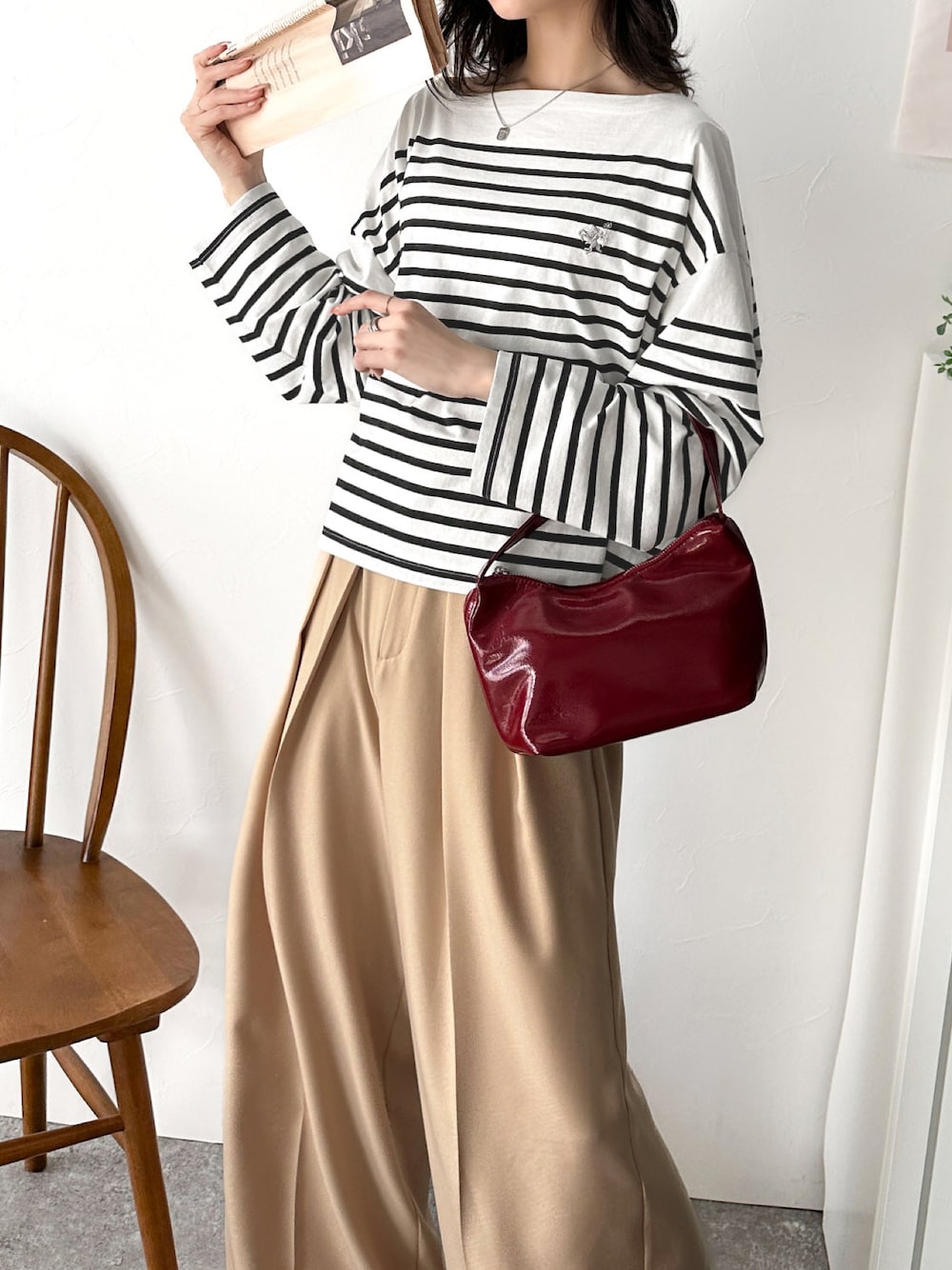 classicalelfクラシカルエルフ(Classical Elf ZOZOTOWN)のTシャツ/カットソー「快適な着心地と洗練されたデザインが魅力。ボートネックオーガニックコットン100%パネルボーダーTシャツ(長袖)」を使ったコーディネート