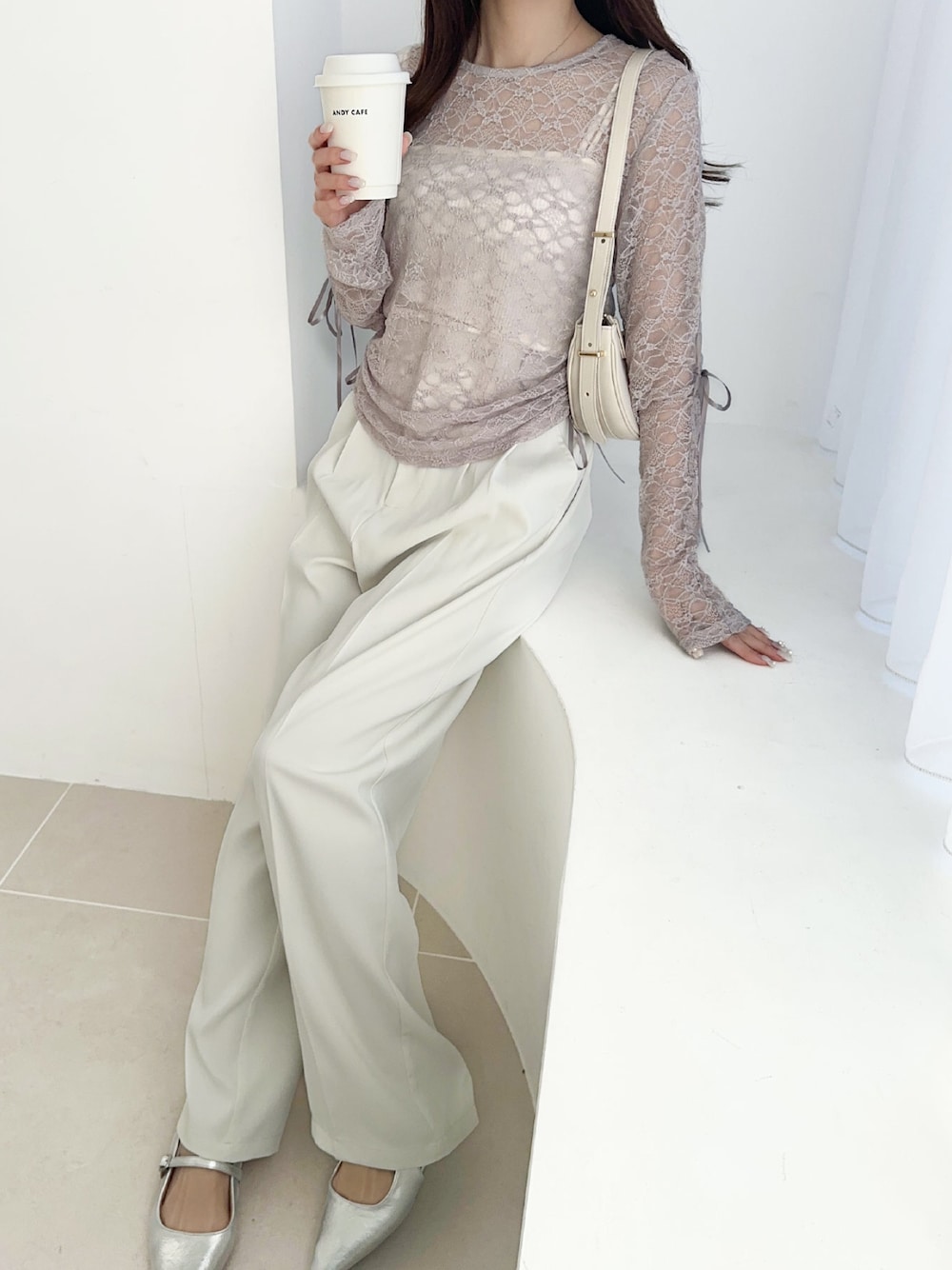 classicalelfクラシカルエルフ(Classical Elf ZOZOTOWN)のTシャツ/カットソー「【mily bilet】甘さと品を一枚に。視線集まるシアージャガード総レースサイドサテンリボントップス(長袖)」を使ったコーディネート