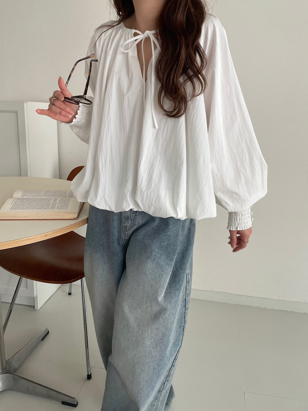 classicalelfクラシカルエルフのシャツ/ブラウス「チャイナボタンが旬を先取り♪前後2wayリボン使いタックブラウス(長袖)」を使ったコーディネート