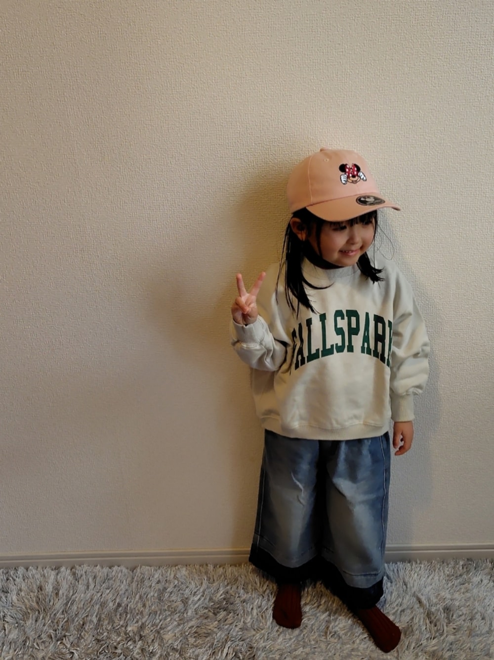 rinのスウェット「キッズ 親子お揃いヘビーウェイト裏毛カレッジスウェット」を使ったコーディネート