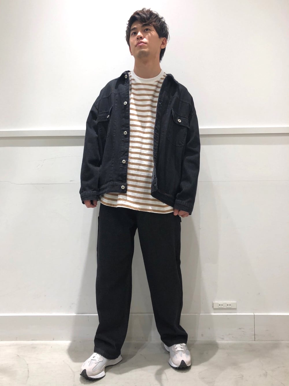 今季一大トレンドのデニムセットアップ! ワークディテールながらどことなく上品でリラックスした雰囲気のセットアップで普段キレイめな服装が多い方でも取り入れやすいかと。 当ブランドには珍しいワイドストレートシルエットのデニムパンツで、あえて裾をためて履くのもおすすめです。 インナーのボーダーTは肉厚で、春は1枚でもしっかり活躍してくれそうです✨