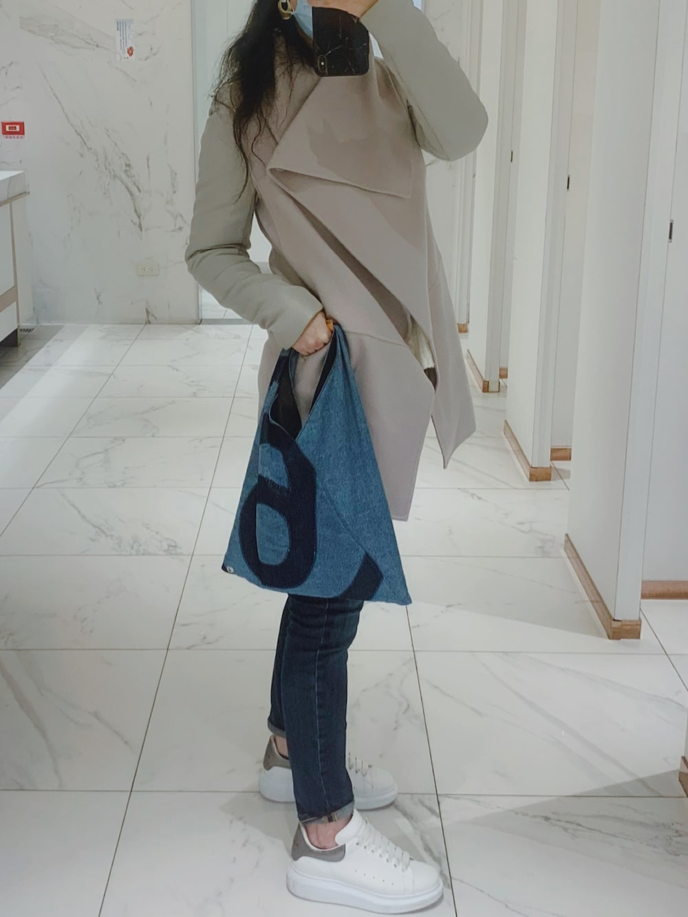 飄洋過海一個月終於收到的新包包,對於只愛皮革包的我來說,這牛仔布包真是大突破了。 原本還在懊惱著沒買到更有型的big size,今天拎出門後才慶幸還好沒買大的,我這個哈比人拿起來應該會拖地⋯⋯😂