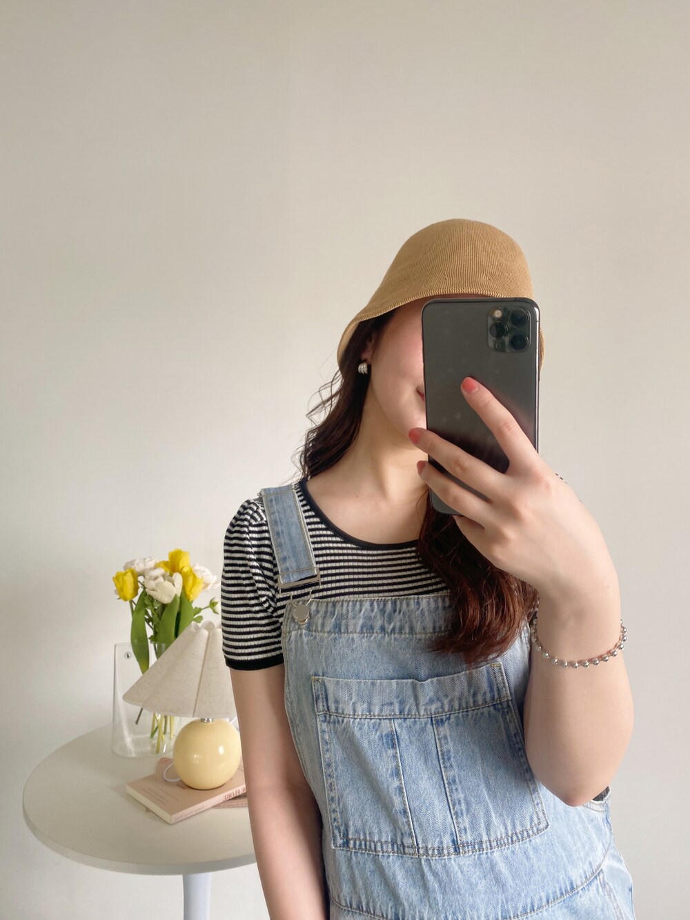 ボーダー×オーバーオールの 夏の定番コーデを着てみました! リネンのハットを合わせて少し女の子っぽさをプラス♡ Instagram▷@clea_official_store