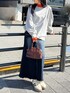 CLEAのデニムスカート「ヴィンテージライクデニムフレアロングスカート」を使ったコーディネート