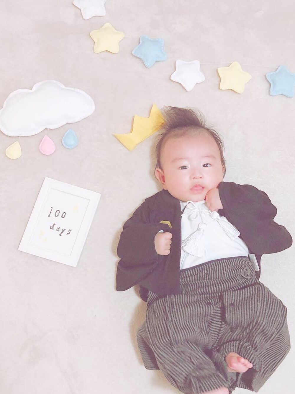 あしゅくん100日おめでとう☺️ あっという間にムチムチBOY👶🏻💓 そんな今日はお食い初めで、 かっこいい袴ロンパース着せました🥺❤️❤️ 後ろにも富士山と松が書いてあってかっこいいこちらのロンパース🥺🥺✨ まだぶかぶかだけどそのうちぴったりになるんだろうなあ(*^^*) Instagram ▷ himari_0121