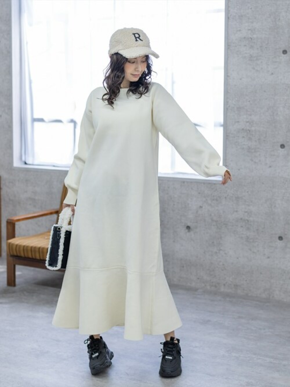 clear(クリア)(clear)のワンピース「ボトムフレアロングニットワンピース ≪2022AW新作≫」を使ったコーディネート
