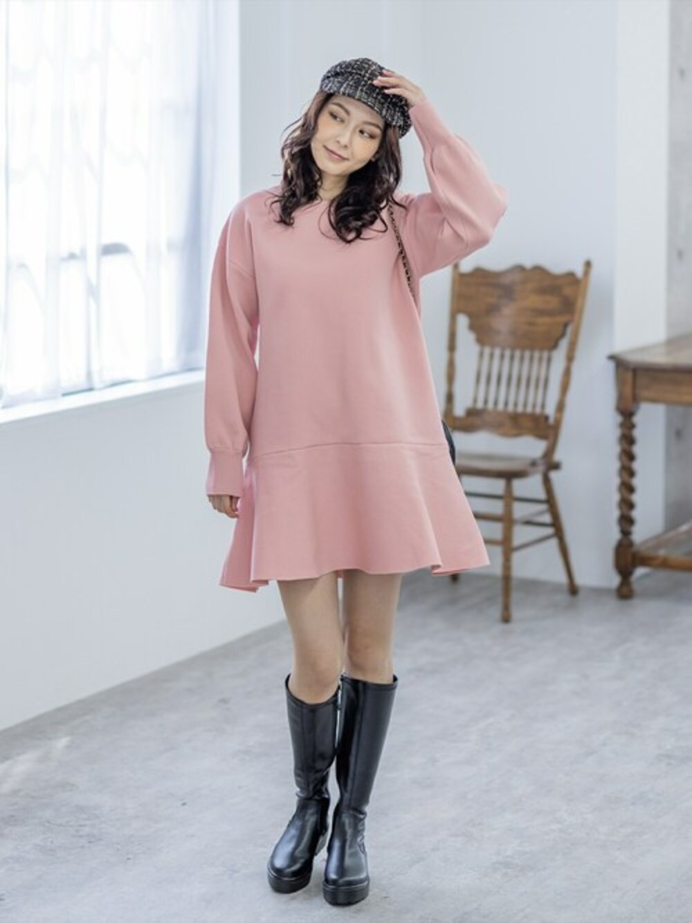 clear(クリア)(clear)のワンピース「ボトムフレアミニニットワンピース」を使ったコーディネート
