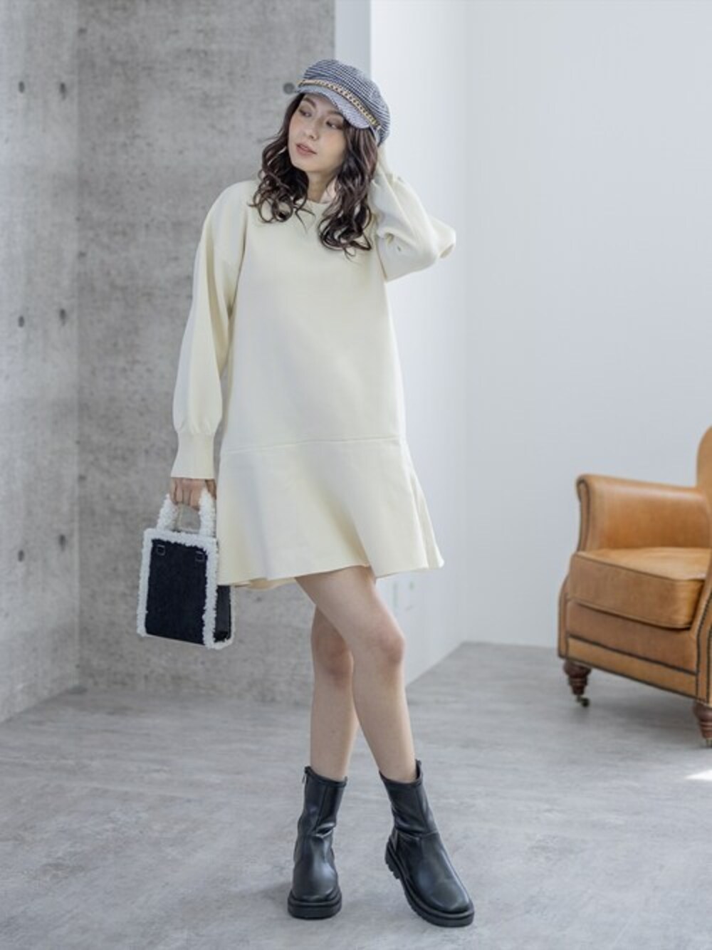 clear(クリア)(clear)のワンピース「ボトムフレアミニニットワンピース」を使ったコーディネート